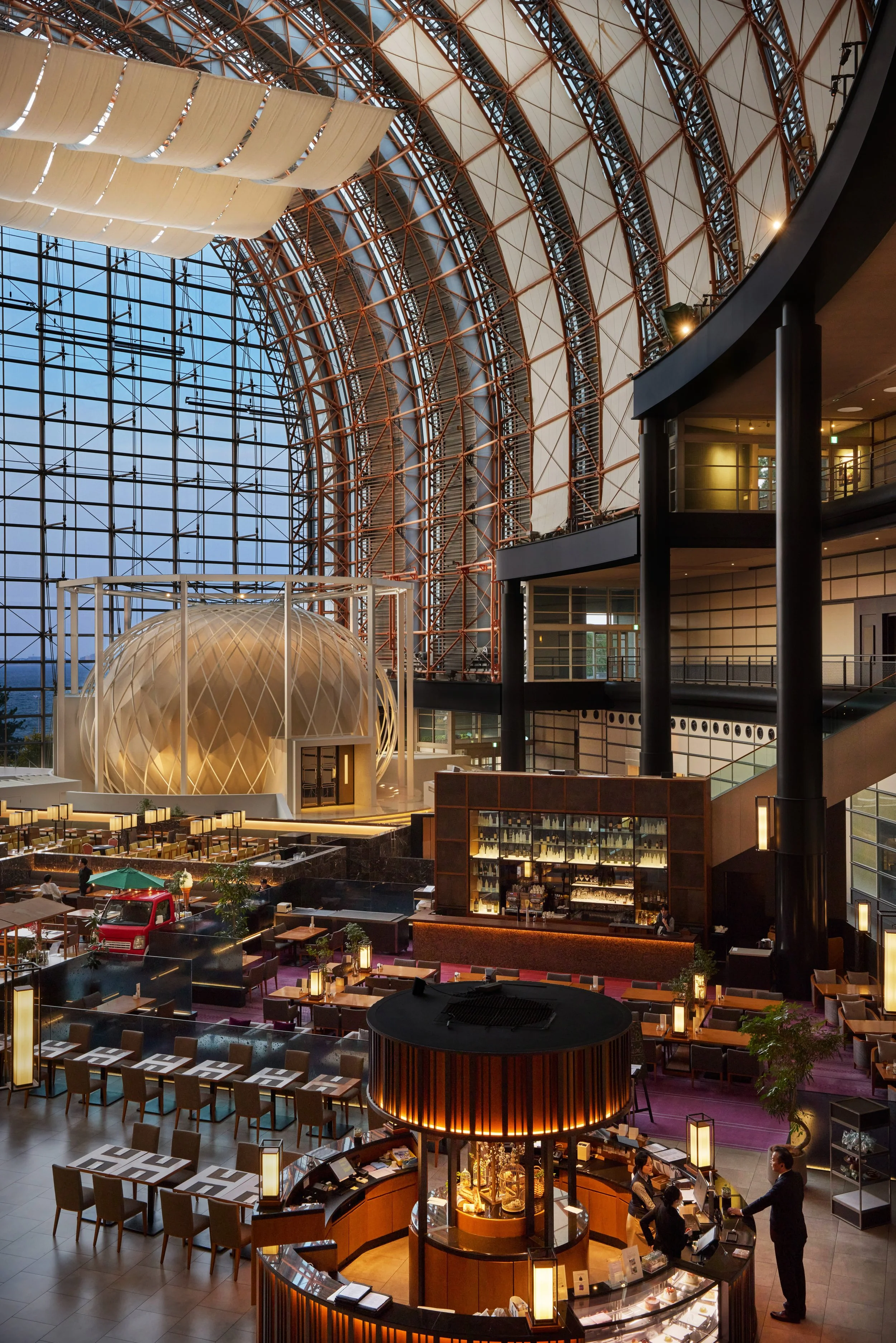 At the Hilton Fukuoka Sea Hawk, the central atrium functions as both the visual identity of the hotel and the spatial structure that concentrates activity across restaurants, lounges, conferences, and events.