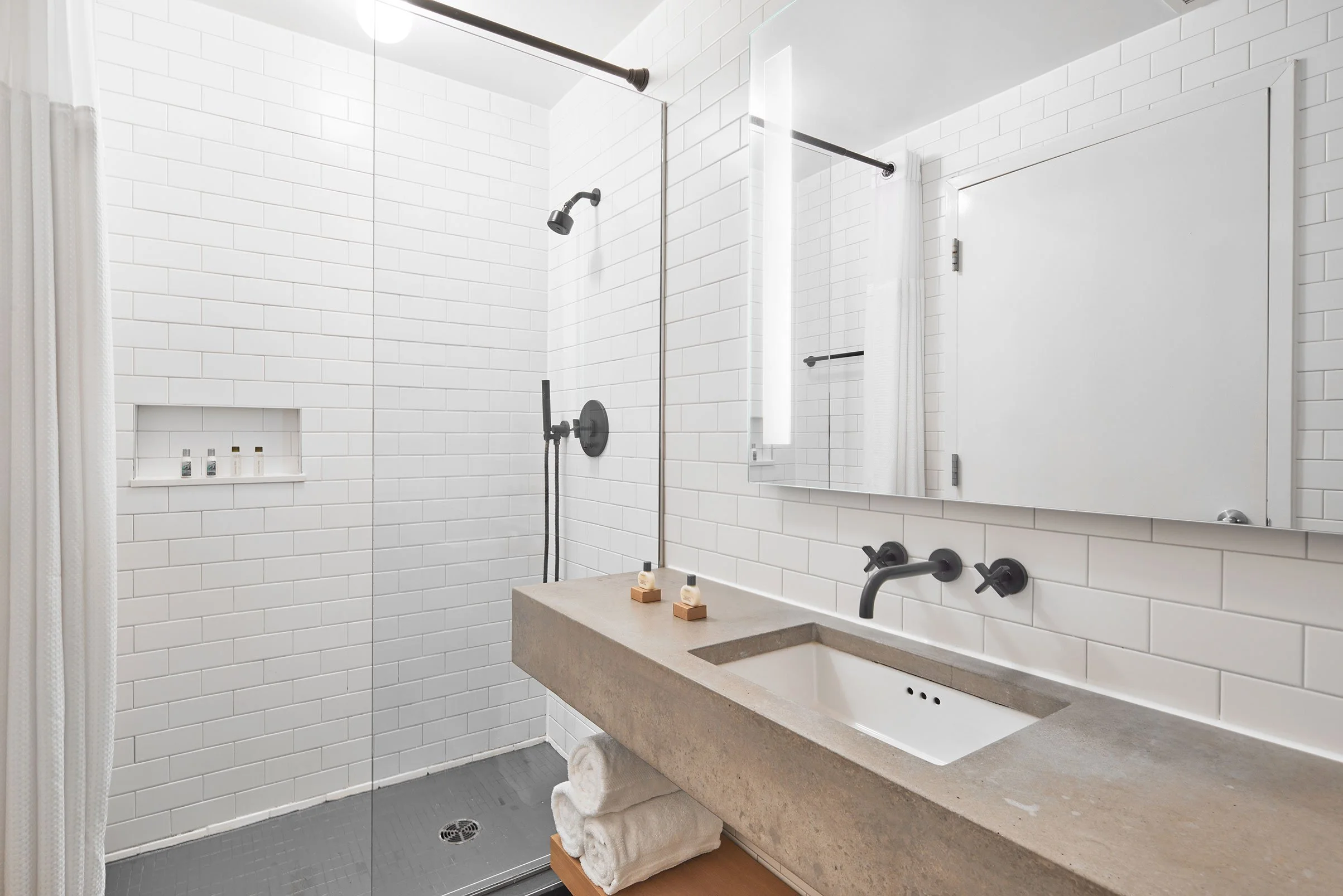 Bathrooms were photographed with clean tonal balance and even lighting to communicate hygiene, brightness, and usable space — all critical visual signals in OTA evaluation.